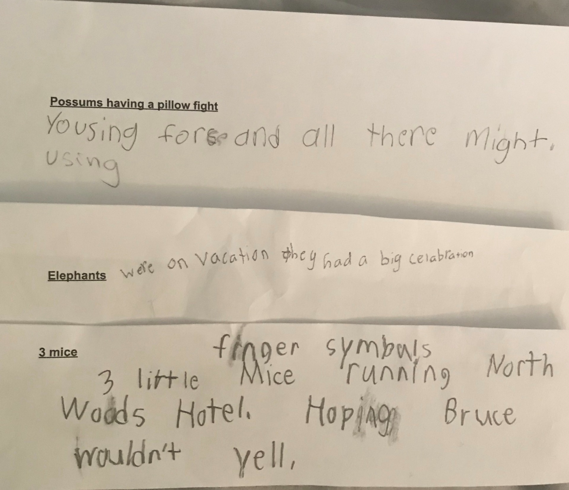I create room for action and expression in my classroom on a daily basis. I keep my students motivated by giving them choices and a feeling of self-accomplishment. I use guided questioning in my lessons to help the students discover on their own. To do this discovery, I allow for pair and share time where the students turn to a neighbor and discuss ideas. Some lessons include original compositions of ostinati, melodies, or rhyming poems. The students enjoy choosing instruments they associate with certain characters or sounds from books. In one lesson, the students created poems to accompany each character in the book Hotel Bruce by Ryan T. Higgins. After creating their eight beat poem, the students picked an instrument they thought represented their character best. This form of expression engages students in critical thinking and helps them apply musical characteristics with an image or idea. Below are pages out of Hotel Bruce with the poems and instruments selected to accompany the characters while reading through the book as a class. To see the full lesson see the Word Doc attachment.